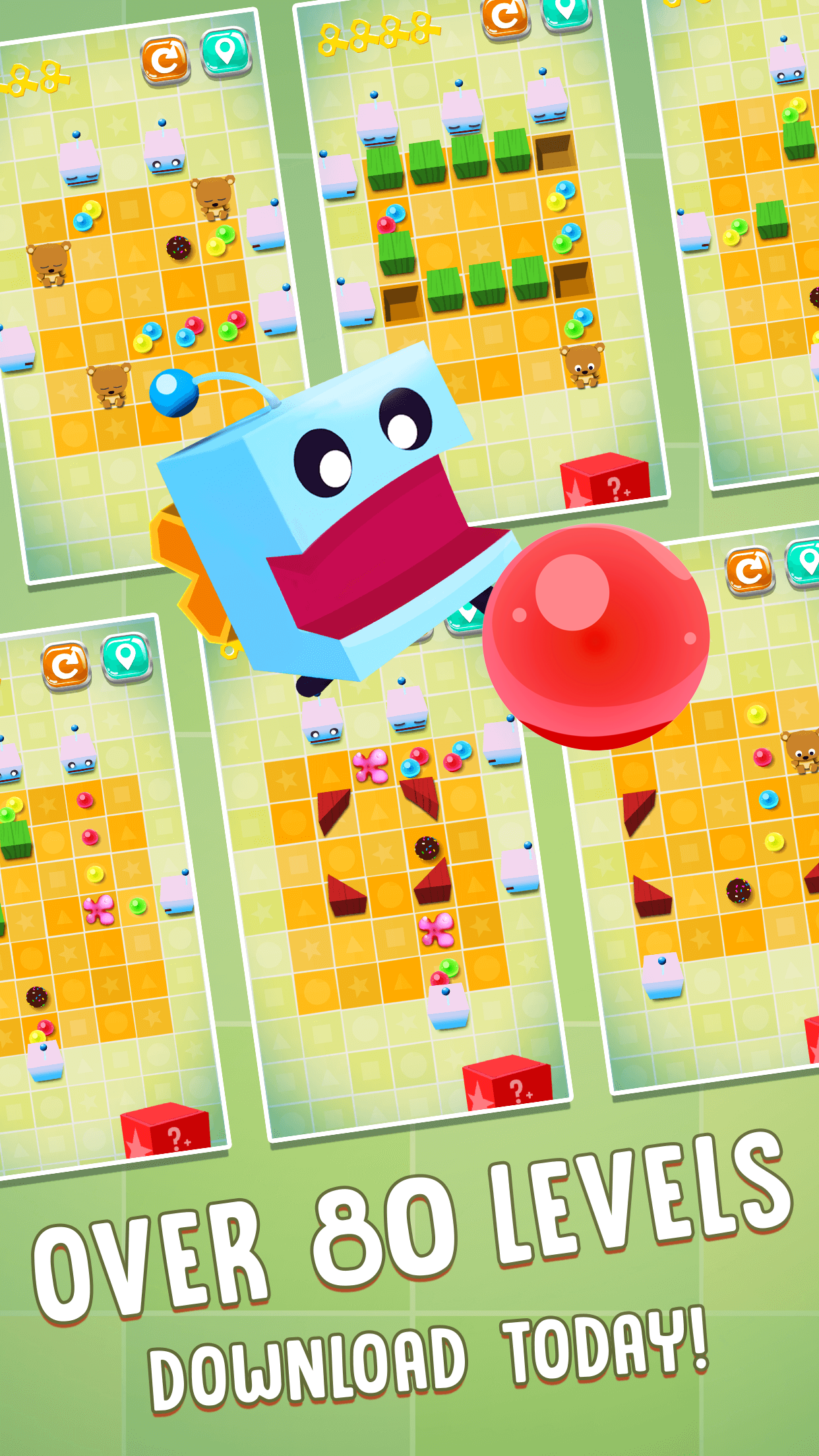 Discover new toys as the robots collect marbles throughout the toy shop. Use toy blocks to change your robot’s direction, send robots walking over each other’s heads, leave your robots trapped in bubblegum, and smash chocolate balls into teddy bears!